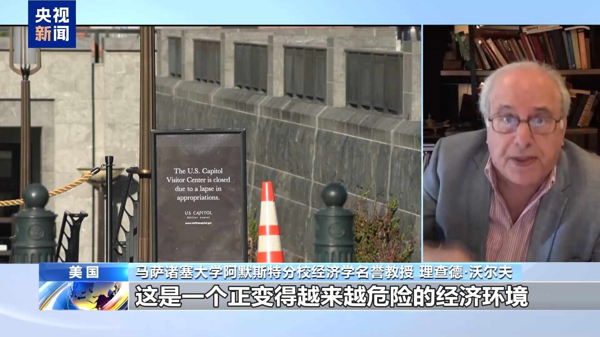当地时间4日,美国专家接受央视记者采访时指出,美国联邦政府“关门”造成的破坏性影响已波及民航、食品、医疗等领域,并持续扩大,使民生和经济面临双重压力。美国国会日前警告称,如果政府继续关门,可能给美国经济造成70亿至140亿美元的损失。根据政府关门的持续时间,预计关门将使今年第四季度实际国内生产总值年增长率降低1至2个百分点。美国专家认为,“停摆”将对美国经济造成直接损失。马萨诸塞大学阿默斯特分校经济学名誉教授理查德·沃尔夫:这是一个正在变得危险的经济环境,而联邦政府的“关门”就成为这种危险局面的象征和例证。美国过去曾出现过联邦政府“关门”的情况,但这是历史上持续时间最长的一次,表明这是一个更难解决的深层次问题。其效果很难准确衡量,但我判断经济增长将低于原本的水平,而本届政府用“关门”的方式来解决政府预算问题是一个非常糟糕的方法。专家指出,联邦政府“关门”将影响到普通民众,而食品救济计划的削减将使低收入家庭紧张不安。马萨诸塞大学阿默斯特分校经济学名誉教授理查德·沃尔夫:有些人会吃得更少,饥饿会影响他们的健康。生病时,他们无法工作并需要医疗护理。在这一切中,没有人真正计算将会造成多大的损害,将会损失多少经济产出。